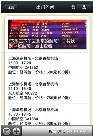 微信是一个OA系统,主要功能是输入与输出。PC时代,用户主要通过鼠标、键盘和文本来输入,在微信上,除了文本还有语音和图片,整个OA系统比传统官网更加丰富。看到这一点之后,南航开始琢磨,怎样通过微信平台的特点来优化用户体验。具体到南航微信公众账号上,对于微信提供的现有接口和功能,郑炜旸认为“大部分能满足公司的需求了。