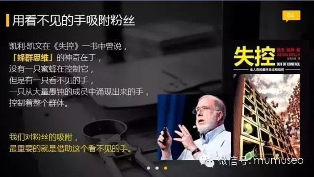 凯利?凯文在《失控》一书中曾说,「蜂群思维」的神奇在于,没有一只蜜蜂在控制它,但是有一只看不见的手,一只从大量愚钝的成员中涌现出来的手,控制着整个群体。我们对粉丝的吸附,最重要的就是借助这个看不见的手。
