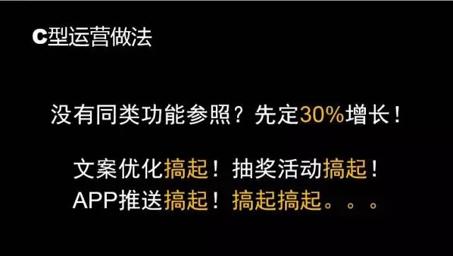 面对这样的运营要求,有一些运营的做法是这样的:他们是会给自己设定30%这种符合“互联网”速度的增长,并且把各种运营活动执行的非常到位。