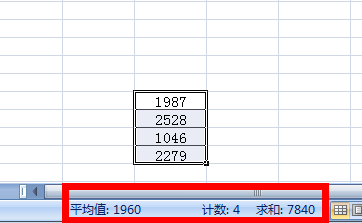 想要直接知道某几个数的和或者平均值,那么直接选中那几个数就可以知道了。选择之后,在最下方的状态栏中,就有求和、平均值、和计数显示。